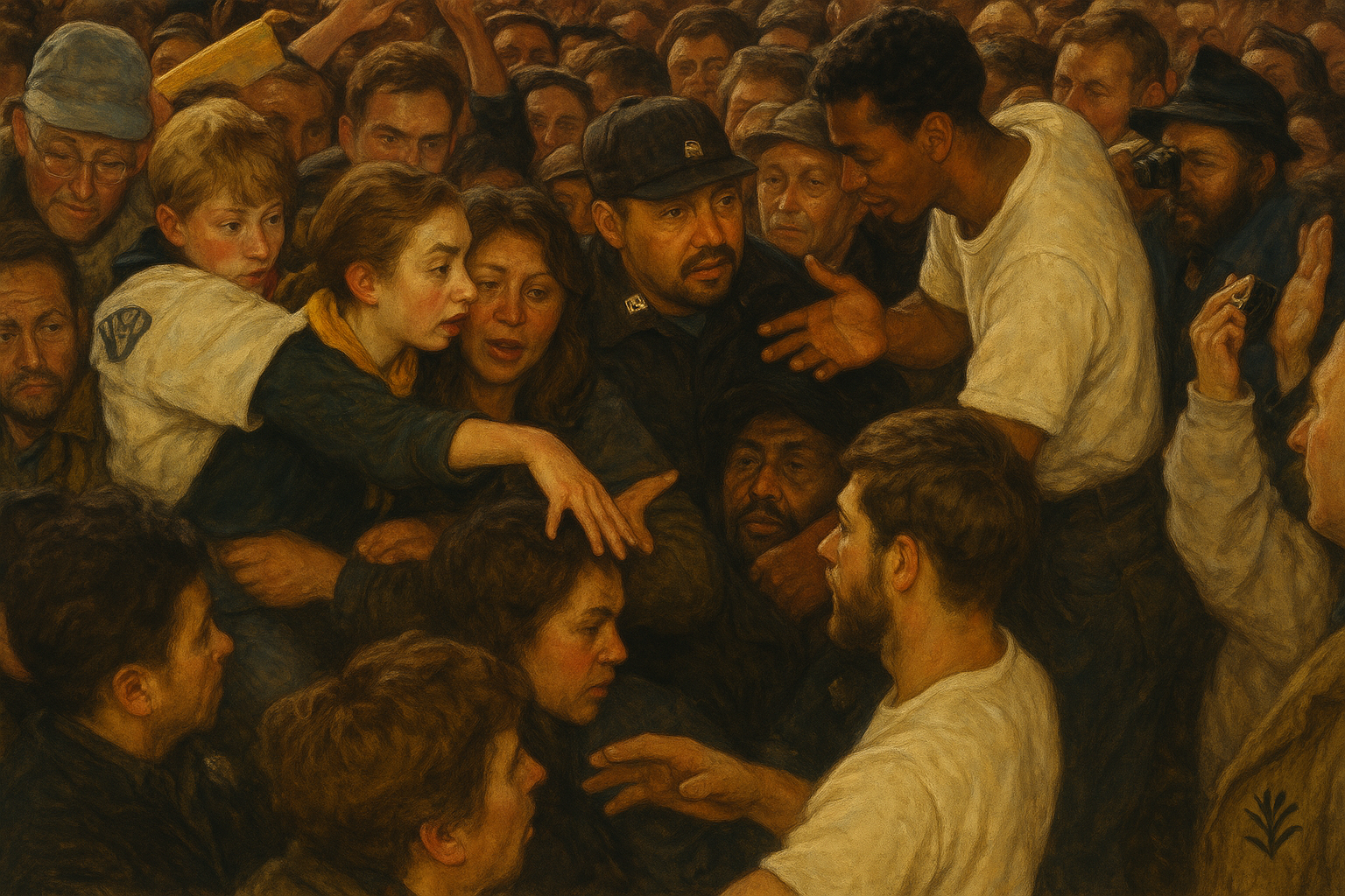 On Friday, November 19, the judge calls the courtroom to order. The jury files back in. The foreperson reads the verdict: Kyle Rittenhouse is found not guilty on all counts. Rittenhouse collapses momentarily as the final charge is read. Defense attorneys steady him. The courtroom remains controlled under the judge’s guidance. Outside, reactions split. Some groups cheer; others stand silent or hold signs aloft. In cities across the country — Portland, Chicago, Oakland — demonstrations form after sundown. Crowds gather with megaphones, posters, candles. Police direct traffic, set up temporary barricades, and stand by for potential escalation. Some marches remain peaceful; others report scattered property damage. In downtown areas, helicopters circle overhead and sirens echo intermittently.